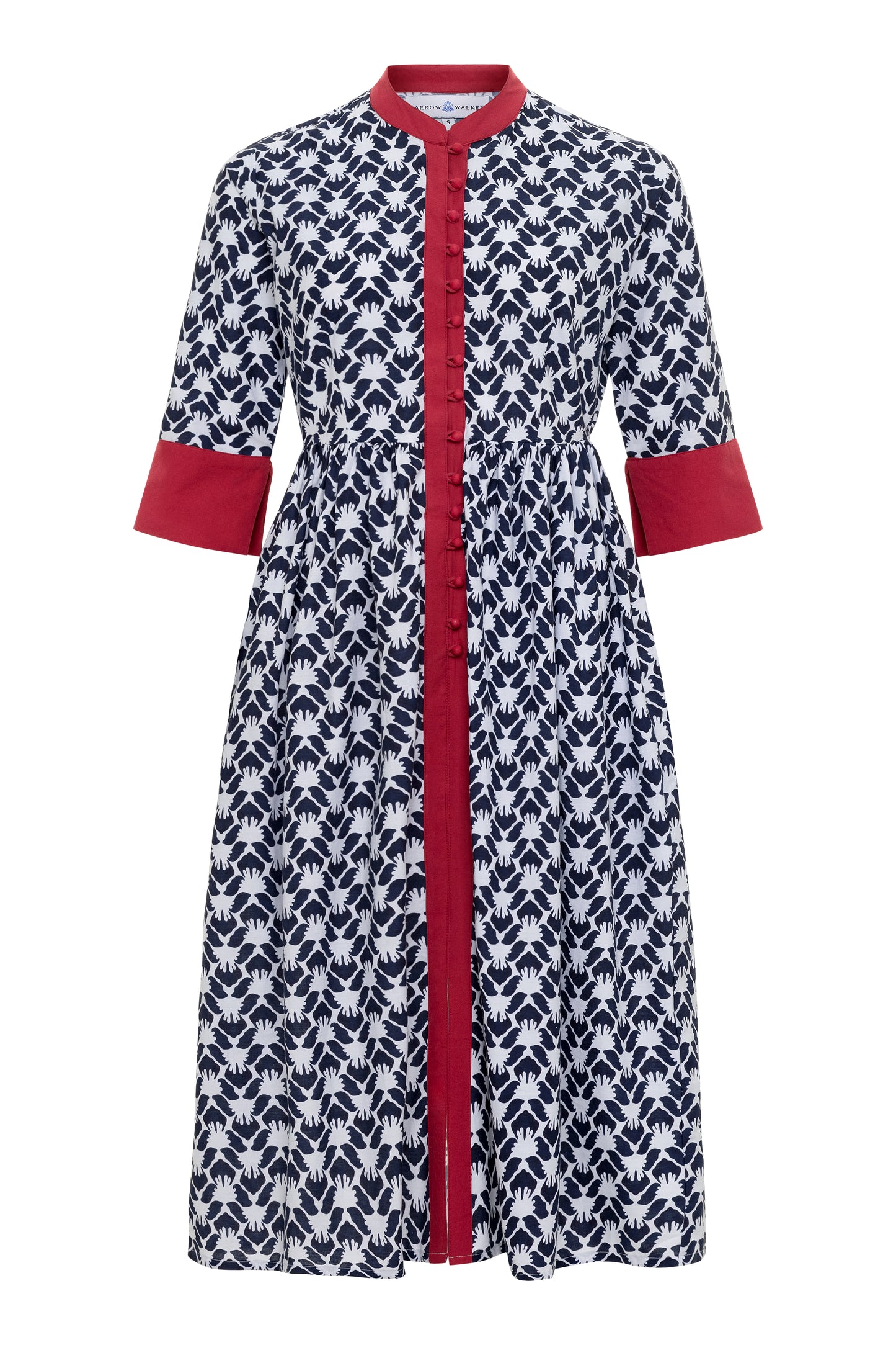 Cici Long Round Neck Dress in Palmetto Navy / Red